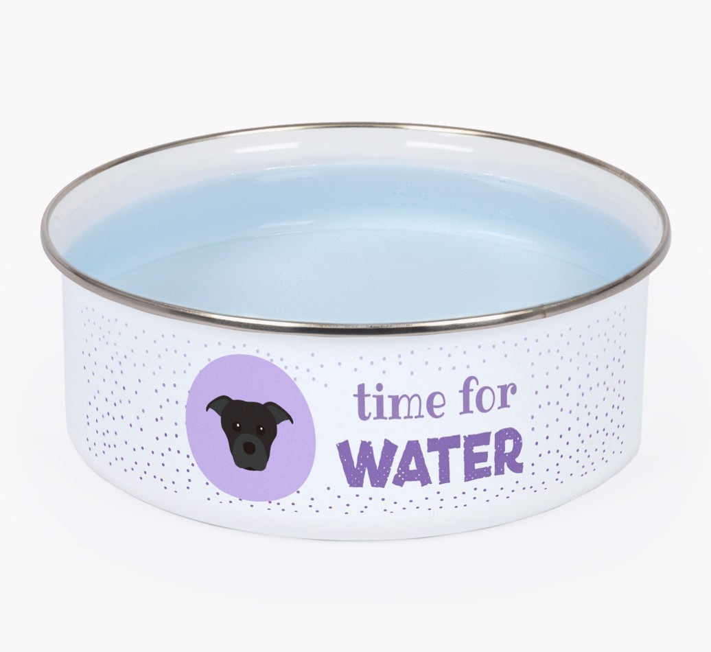 Time For Water: Personalized Enamel Staffordshire Bull Terrier Bowl
