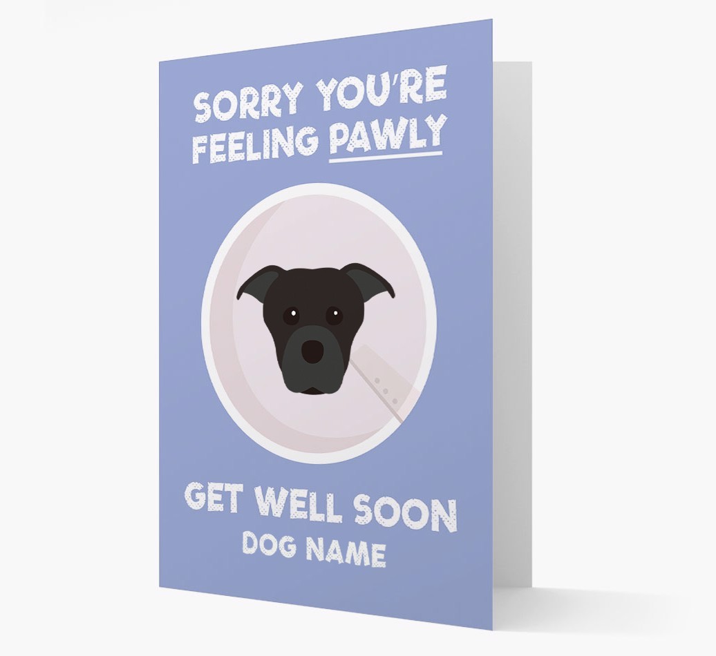 'Sorry You're Feeling Pawly' - Personalized Staffordshire Bull Terrier Get Well Soon Card
