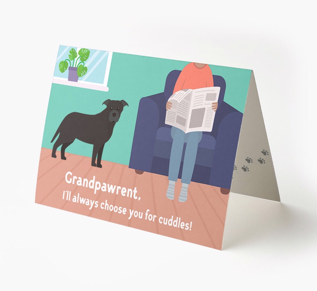 Starring your Staffie's cute icon, this sweet card will remind Staffordshire Bull Terrier's grandpawrent that they're always be the chosen one when it comes to cuddles.