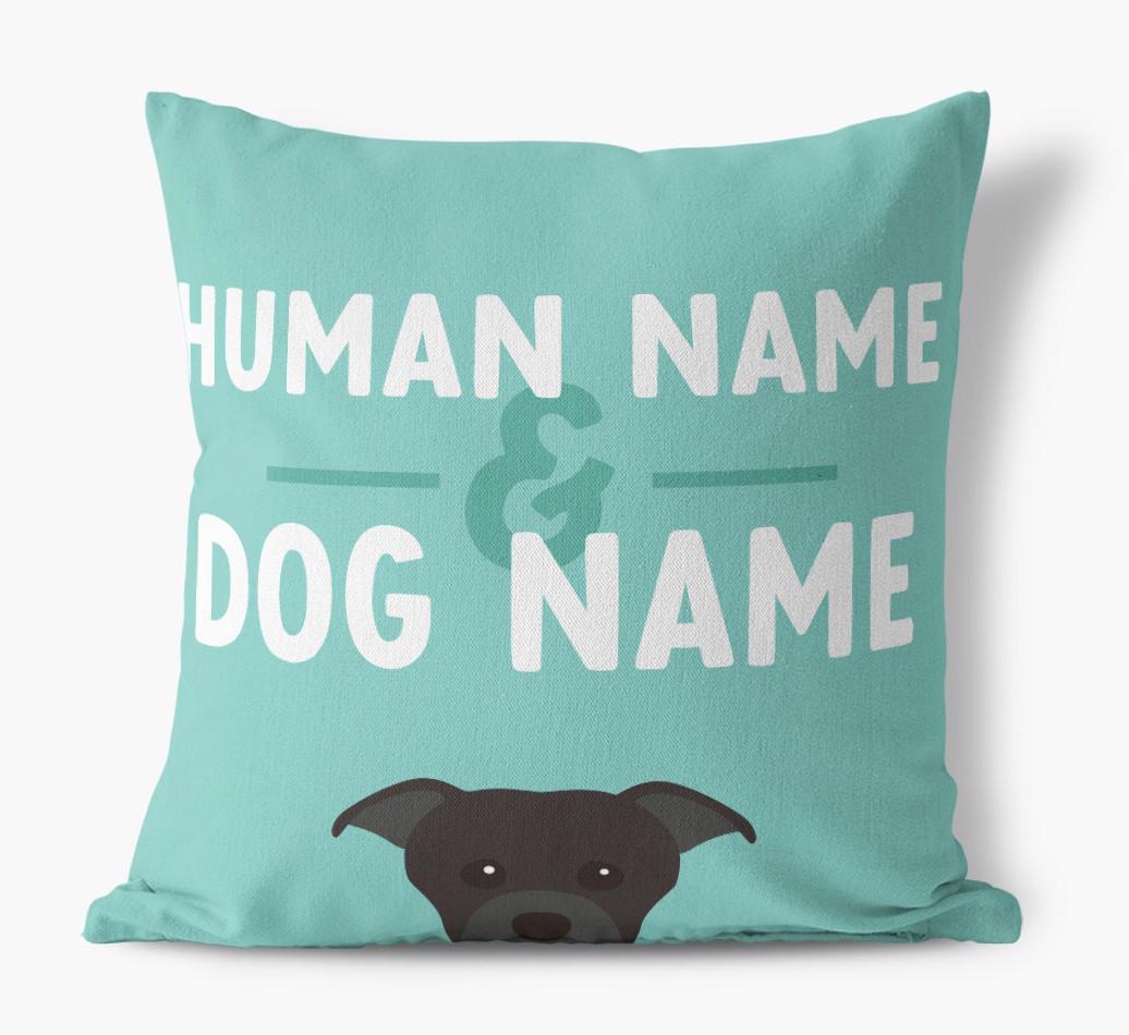 Human And Pet Name: Personalized Staffordshire Bull Terrier Canvas Pillow