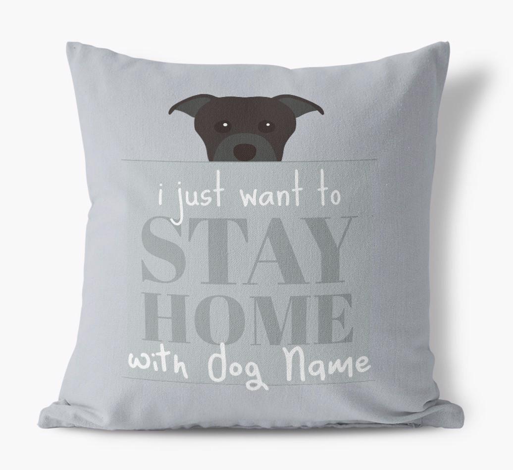 Stay Home: Personalized Staffordshire Bull Terrier Canvas Pillow