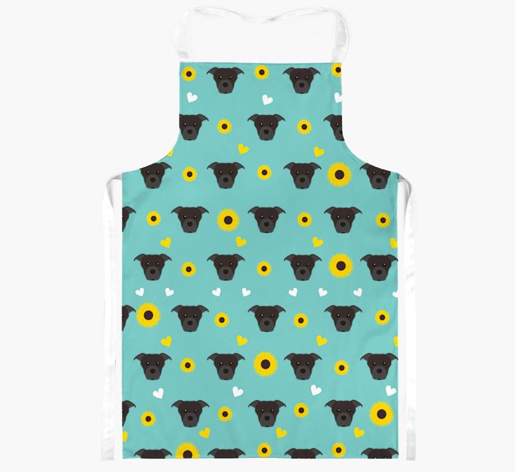 This apron has a delightful sunflower and heart pattern, and best of all - it's personalized with Staffordshire Bull Terrier's face too! This cute and colorful apron is sure to put a smile on every dog lover's face.