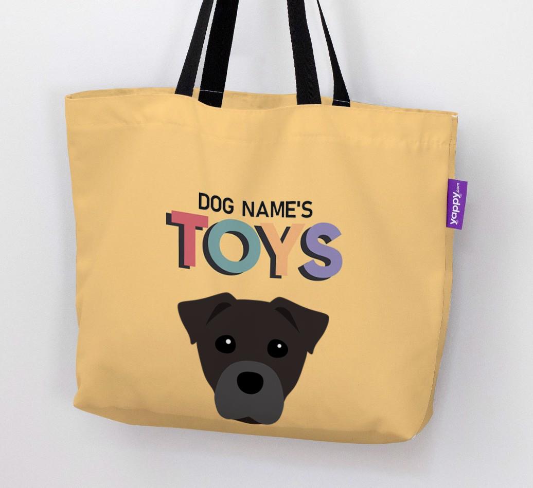 Don’t worry, we’ve got you covered with this pawsonalized canvas bag made for your Staffy Jack’s toy collection!