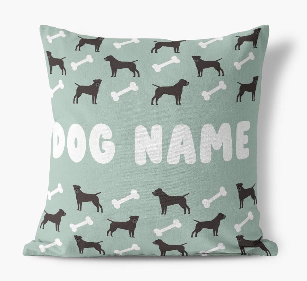 Personalized with Staffy Jack’s name against a background of Staffy Jack icons and bones, this gorgeous pillow is full of pawsonality.