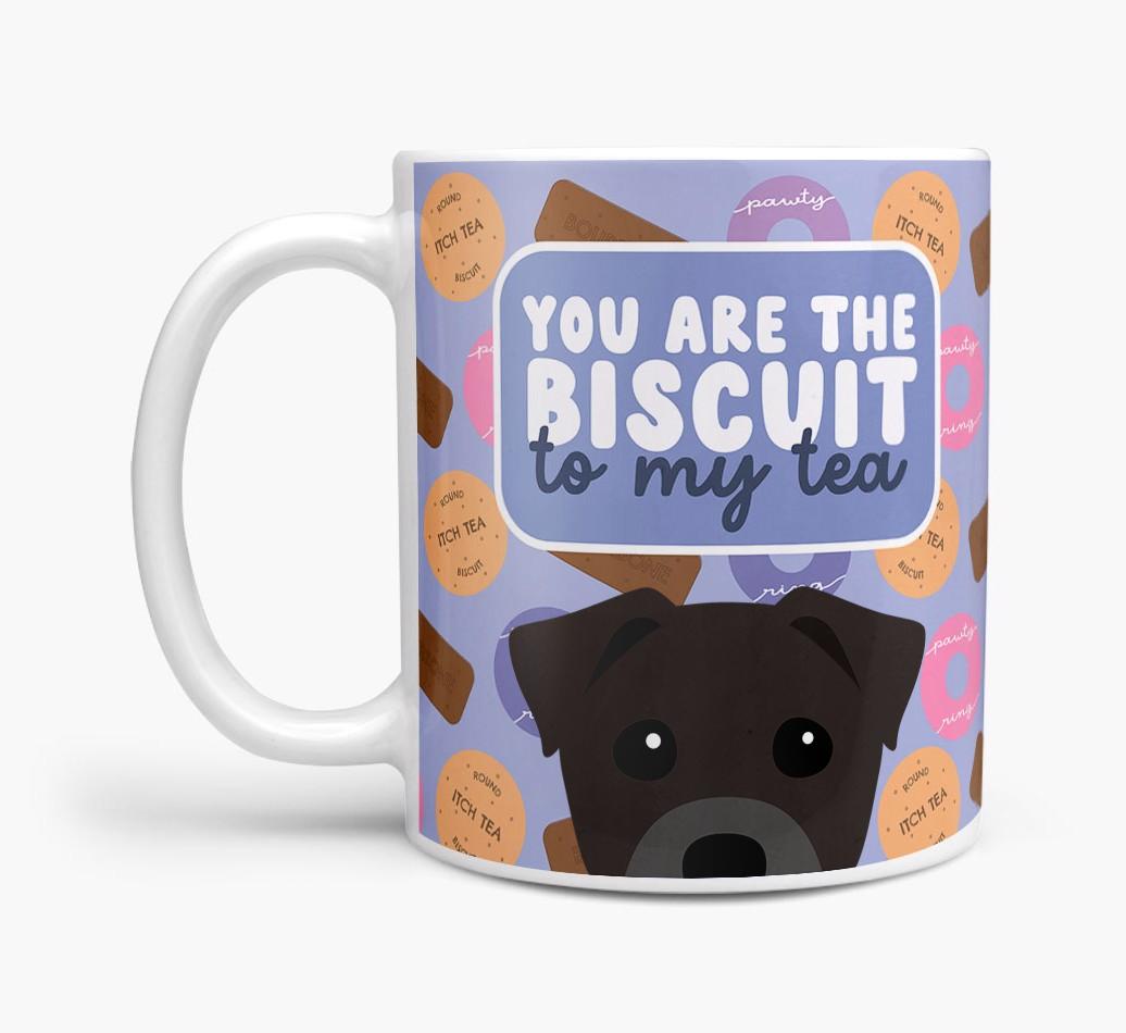 Featuring a cute biscuit motif paired with your Staffy Jack's adorable face, this mug is bound to be a firm favorite in every household.