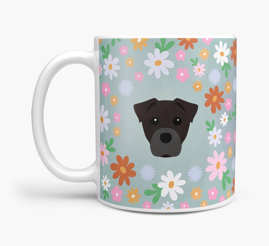 Featuring a colorful bunch of flowers, this mug is printed with the words 'woofly grandma' on one side of the mug and your Staffy Jack's cute icon on the other. Bloomin' lovely!