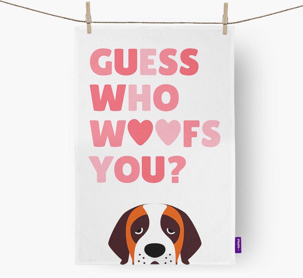'Guess Who Woofs You?' - Personalized St. Bernard Dish Towel
