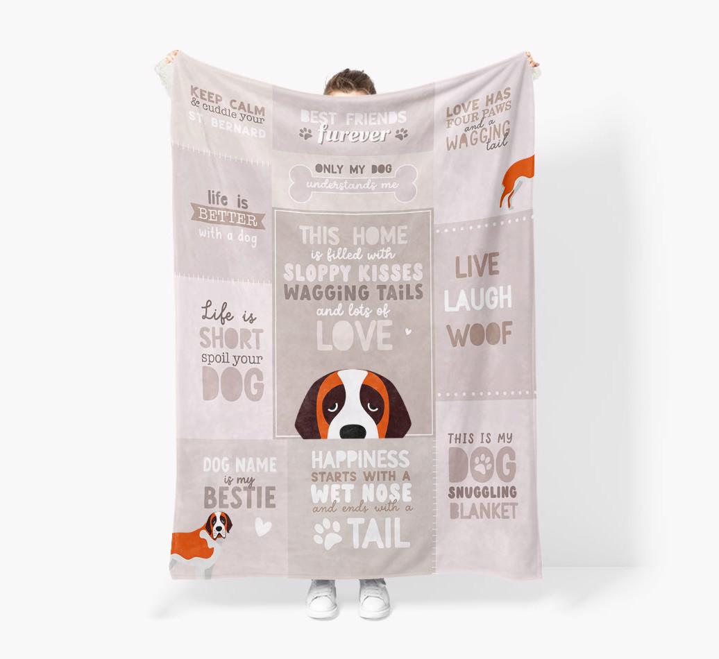 Filled with pawgeous quotes about your furry friend, this blanket is the perfect way to make naptimes with your St. Bernard the coziest ever.