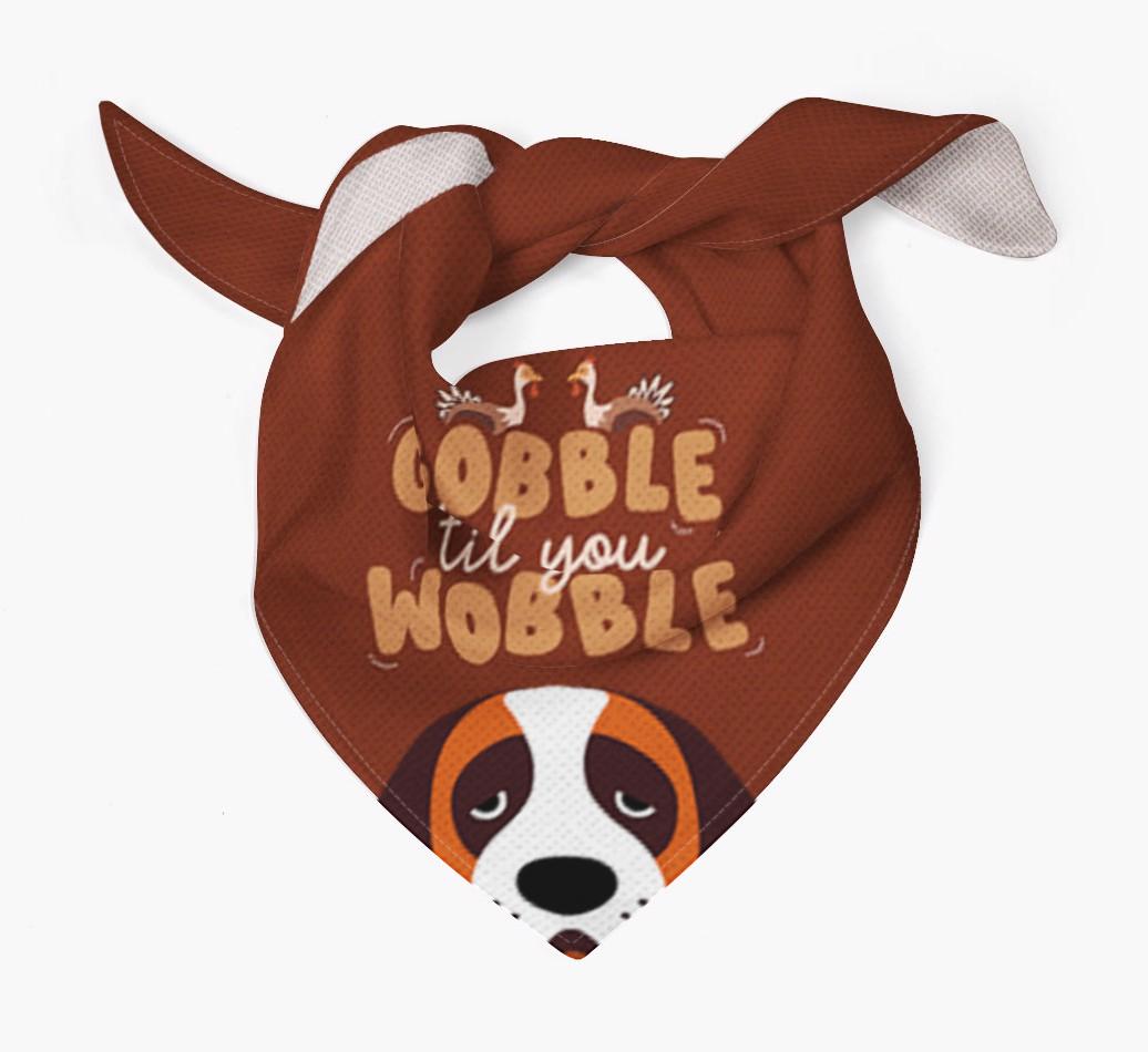 This cute custom bandana is printed with the phrase of the season, "gobble til you wobble"!