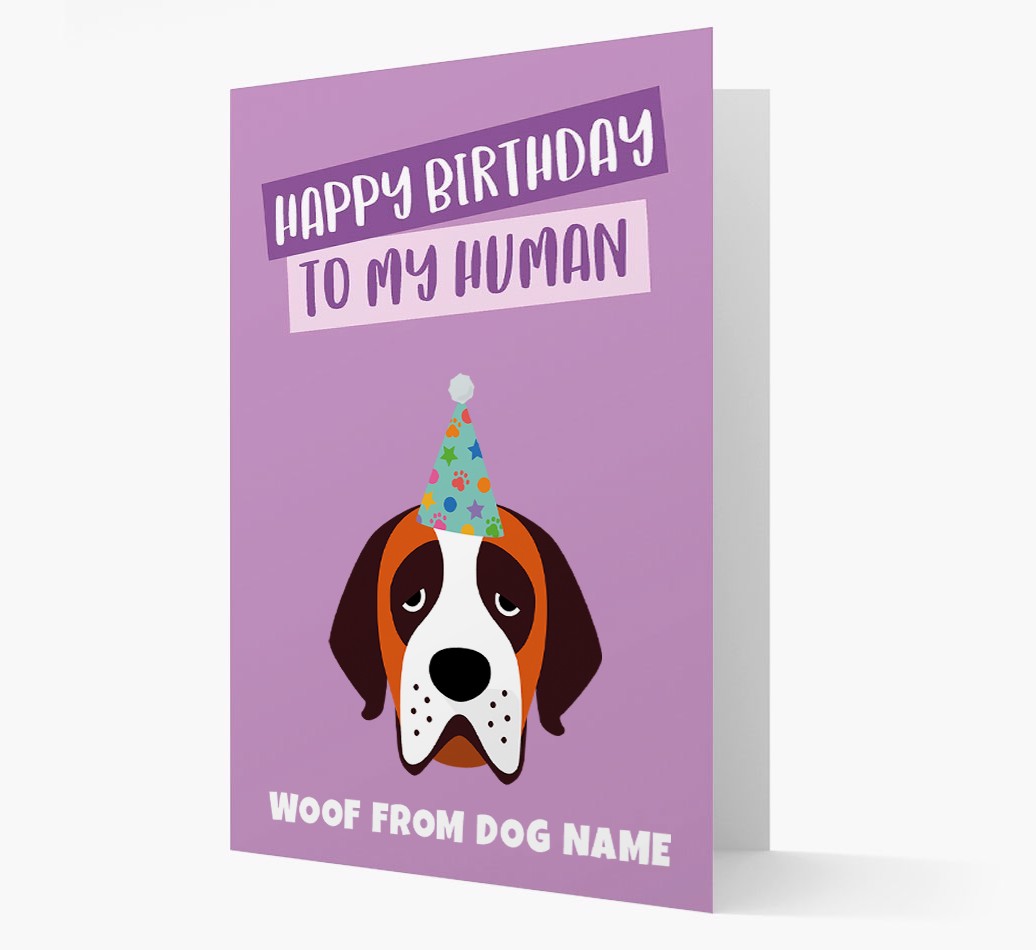 'Happy Birthday to My Human' - Personalized St. Bernard Card