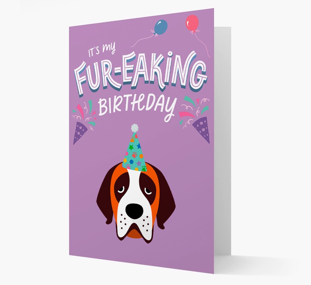 'It's My Fur-eaking Birthday': Personalized St. Bernard Card
