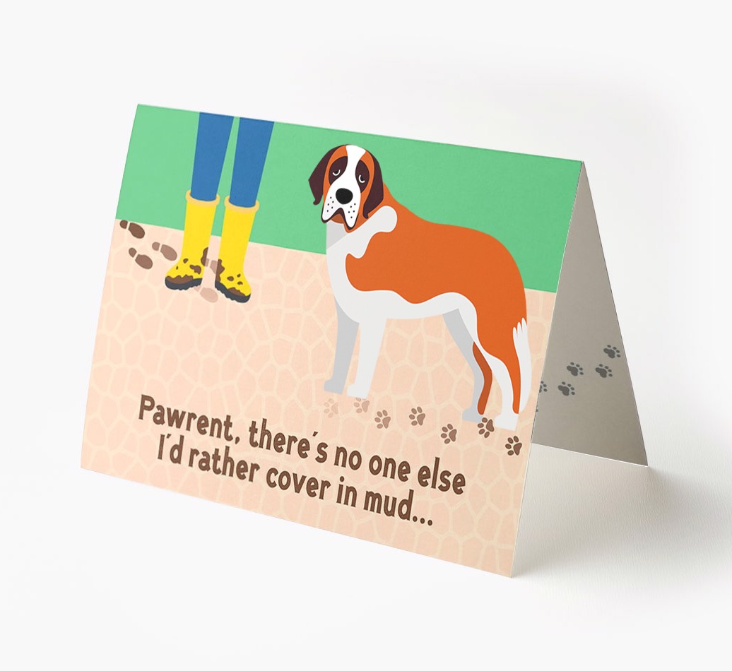 This comical card is sure to delight St. Bernard's pawrent (without getting muddy), especially as it stars their St. Bernard's cheeky icon.