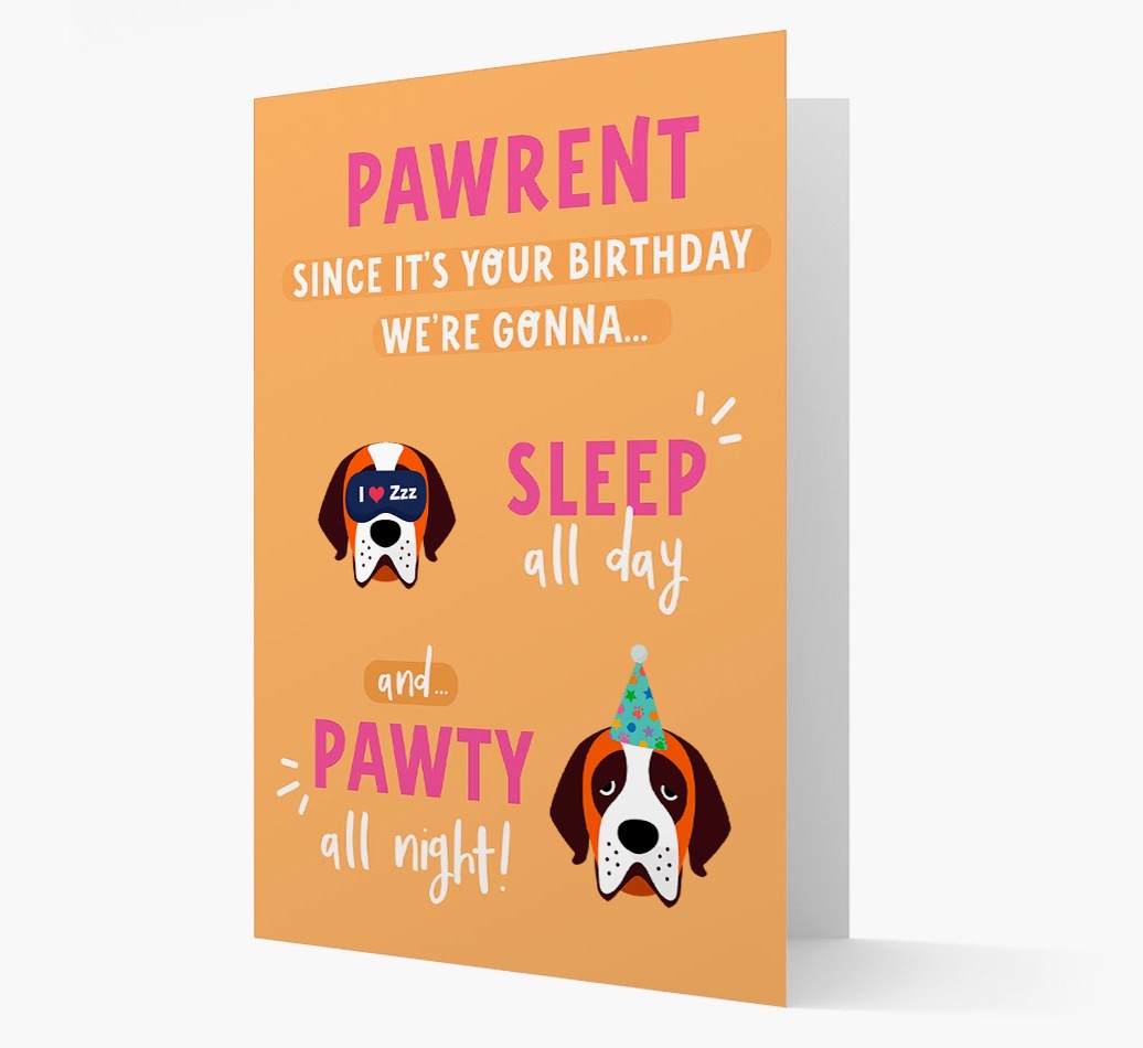 If St. Bernard woofs to pawty all day and sleep all night, this card encourages their pawrent to do it with them on their birthday!