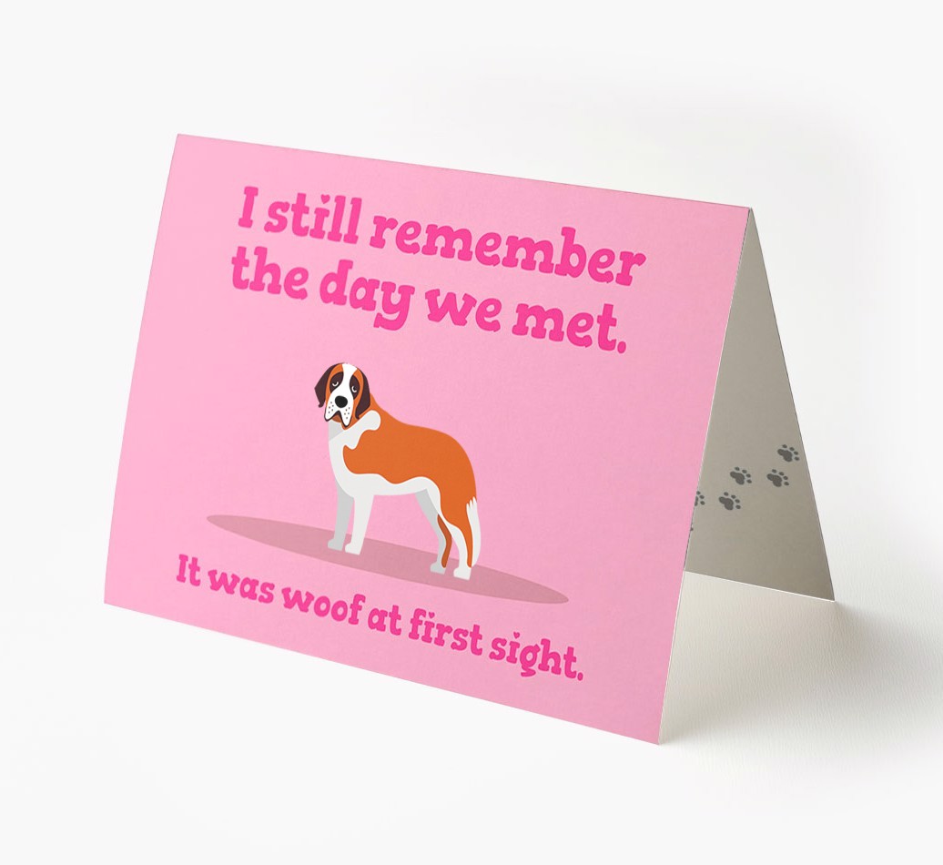Featuring a cheeky St. Bernard, this cute card is a fun way to celebrate your love for St. Bernard or someone you're mutts about!