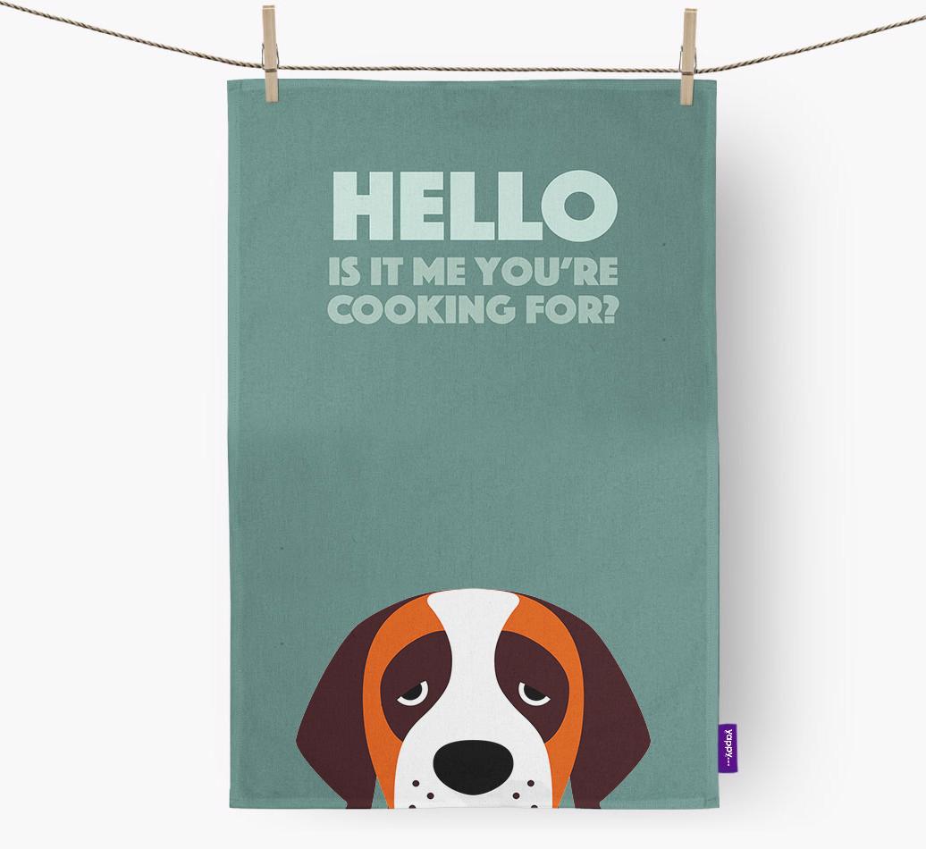 This gorgeous dish towel is sure to delight every St. Bernard pawrent, especially as it stars their pup asking their favorite question, 'is it me you're cooking for?'