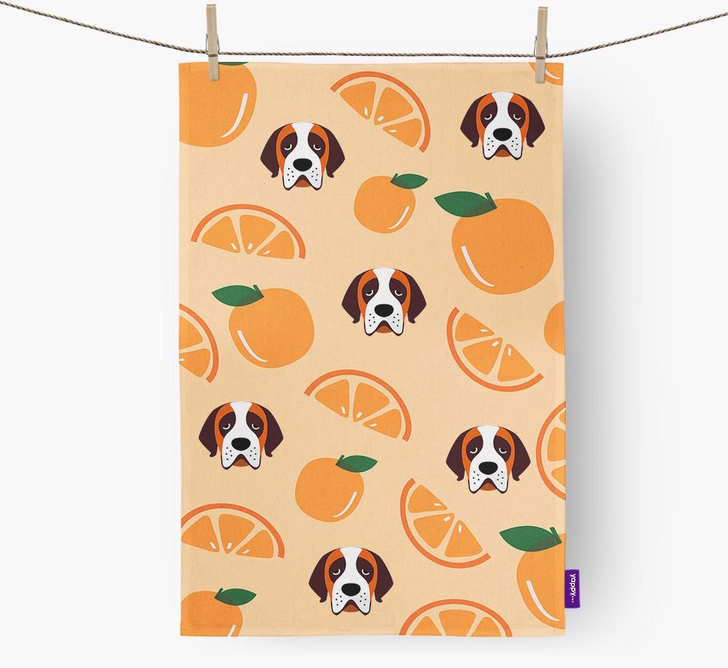 'Fruit Pattern' - Personalized St. Bernard Dish Towel (Various Patterns)