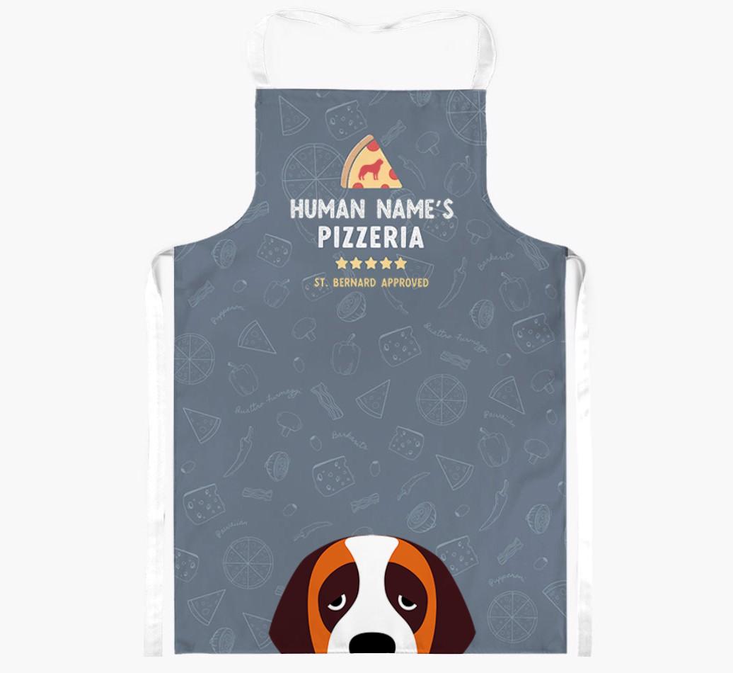 Featuring your furry friend's icon and lick of approval, plus your chosen human name, this apron is pawfect for anyone who considers themselves a pizza maestro in the kitchen. Available in a choice of 5 rustic colors, it'll make any St. Bernard lover happy.