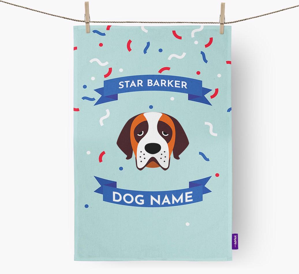 Now you can make sure your St. Bernard’s new title is seen by everyone with this pawsome ‘Star Barker’ dish towel, pawsonalized especially for St. Bernard.