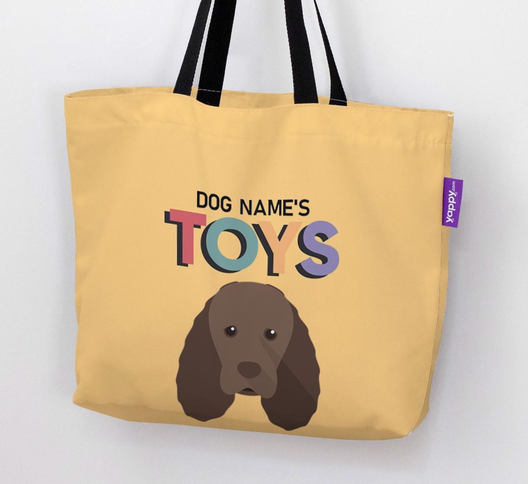 Don’t worry, we’ve got you covered with this pawsonalized canvas bag made for your Sussex Spaniel’s toy collection!