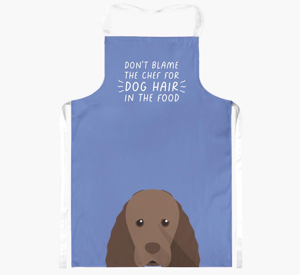 If you’re getting tired of people coming round and moaning about Sussex Spaniel hair in the food, you’re going to need this apron to remind them that you cannot be blamed, it’s Sussex Spaniel’s fault!