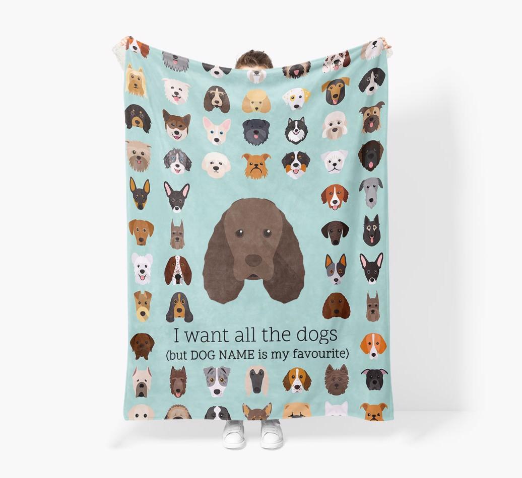 'All The Dogs' - Personalized Sussex Spaniel Blanket: Premium Sherpa Fleece
