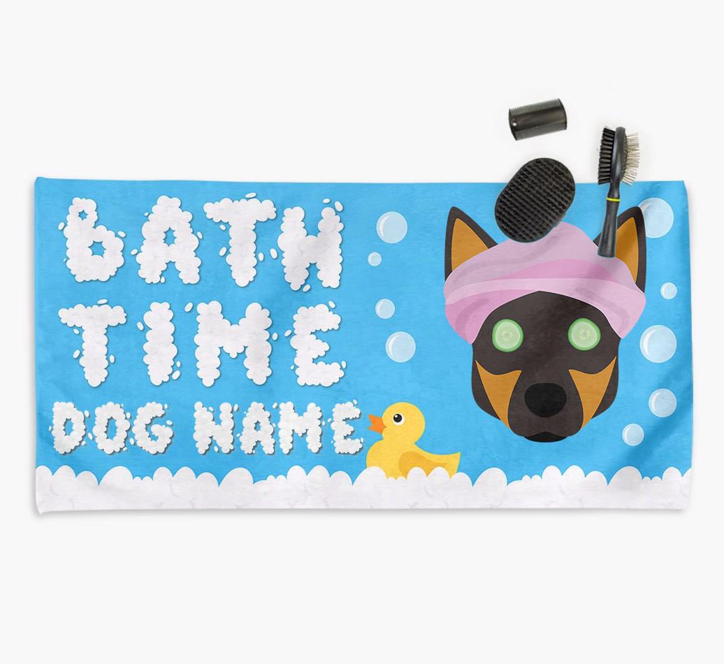 Bubble Bath Time: Personalized Swedish Vallhund Towel