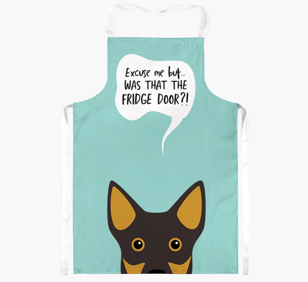 Featuring your hungry hound's cheeky icon and available in five eye-catching colors, this apron is a must-have for parents of greedy pups!