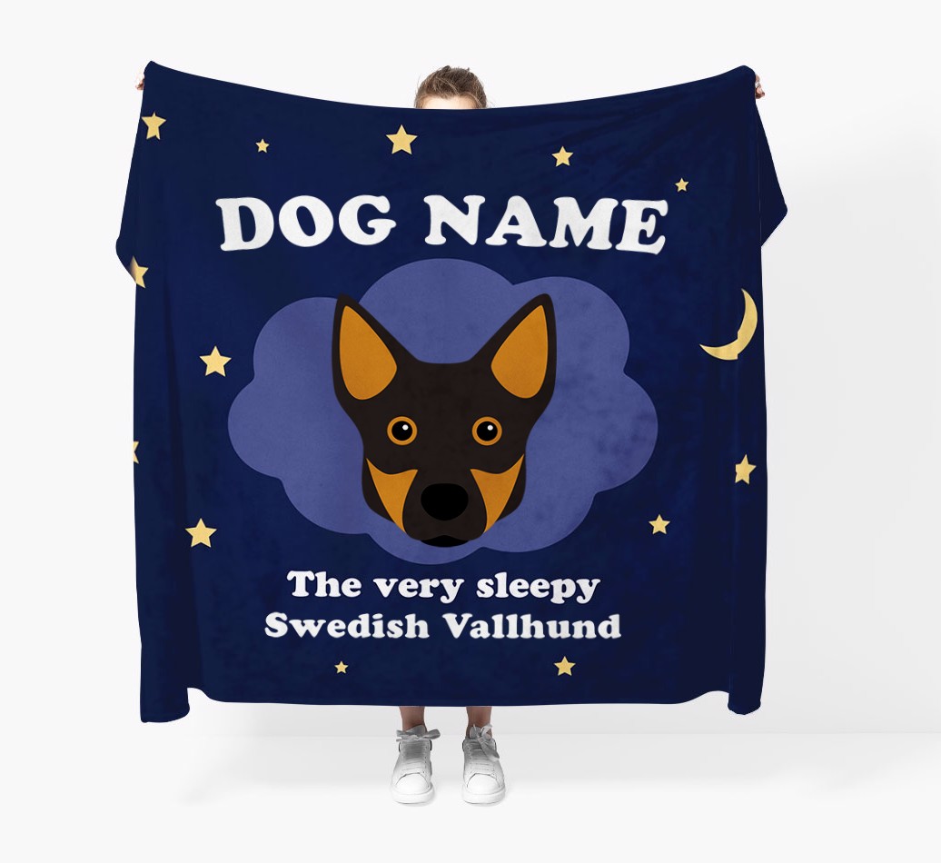 'The Very Sleepy...' - Personalized Swedish Vallhund Throw Blanket