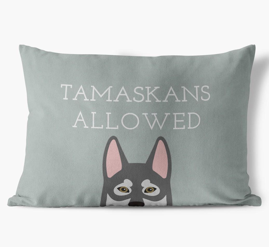 This exclusive, luxurious pillow is printed with the words ‘Tamaskans Allowed’, which I’m sure Your Tamaskan would definitely approve of.
