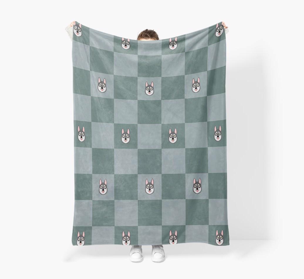 'Checkboard' - Personalized Tamaskan Blanket: Premium Sherpa Fleece