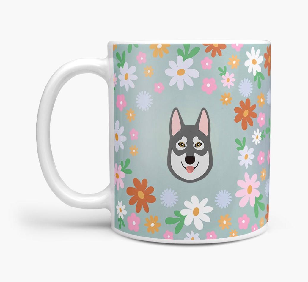Featuring a colorful bunch of flowers, this mug is printed with the words 'woofly grandma' on one side of the mug and your Tamaskan's cute icon on the other. Bloomin' lovely!