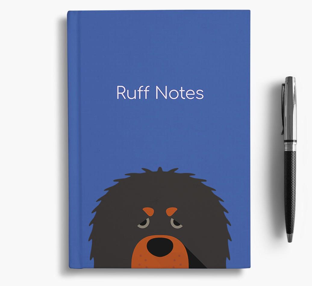 The front cover features our exclusive Tibetan Mastiff peeking icon and is printed with the words, ‘Ruff Notes’, whilst the back is printed with the words ‘Live. Laugh. Woof.’.