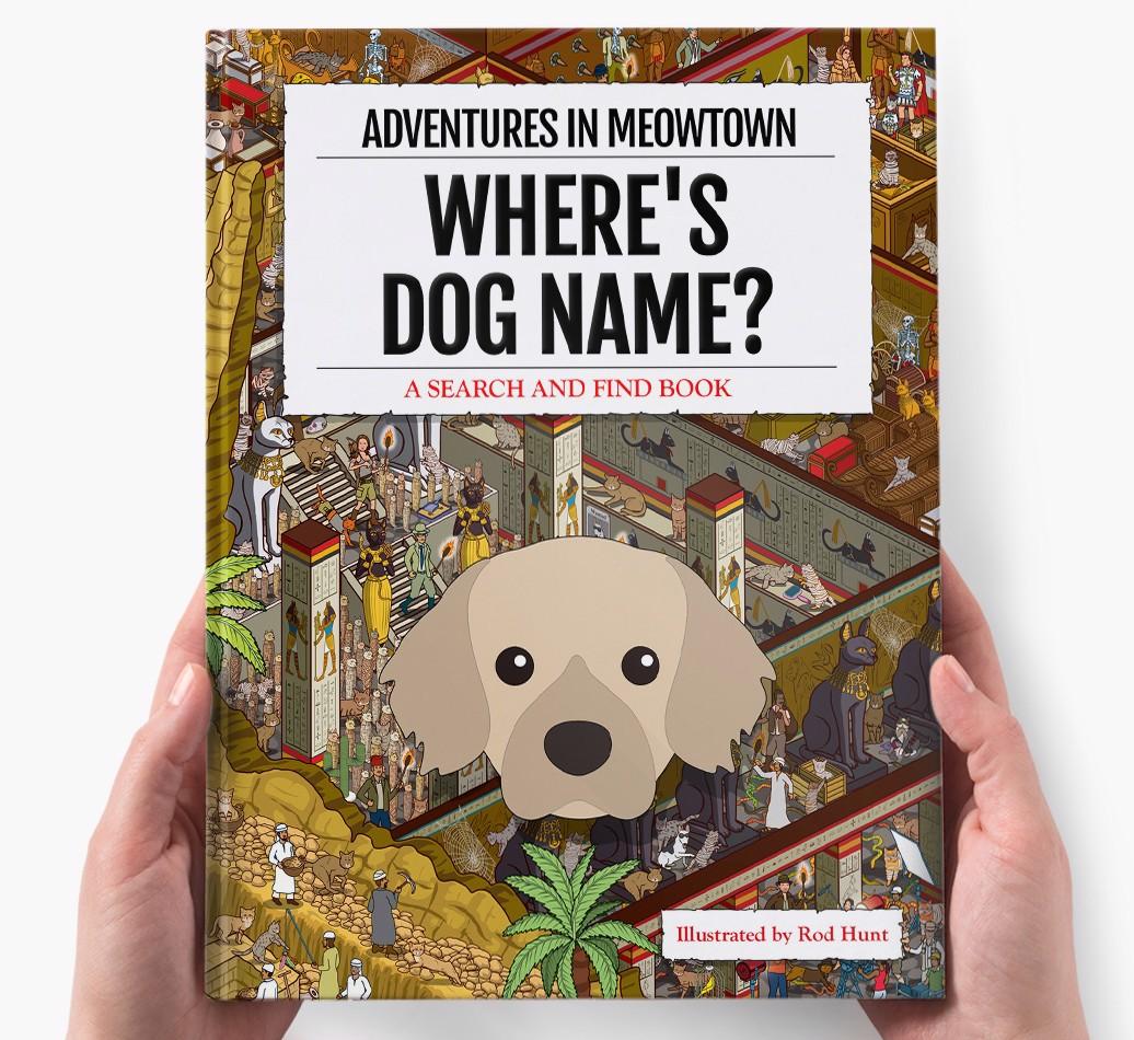 Get ready to unleash your inner detective with our popular Search & Find book, ‘Where’s (insert dog name)?’ It’s the personalized dog book everyone’s yapping about! With twelve beautifully illustrated locations to explore, we challenge you to find your adventurous {breedShortName} on each action-packed page. Can you spot all the canine cameos and funny parodies too?