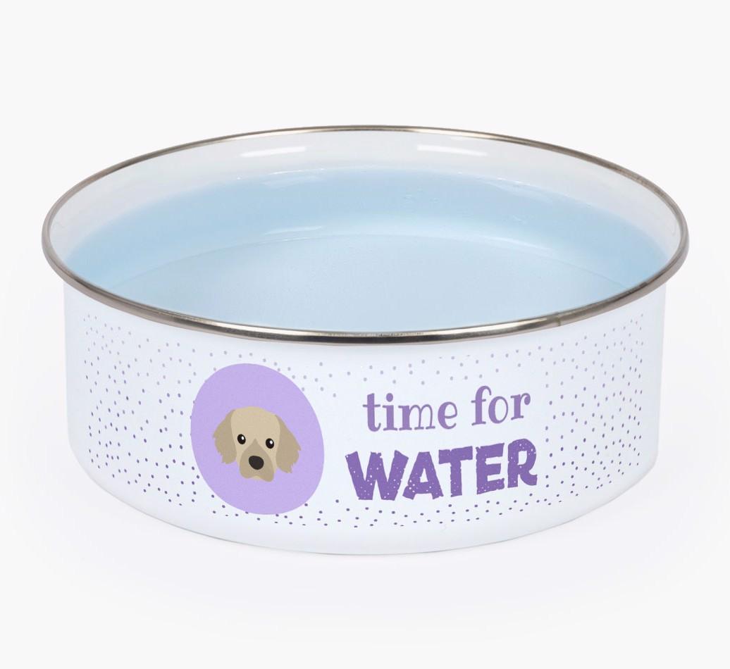 Time For Water: Personalized Enamel Tibetan Spaniel Bowl