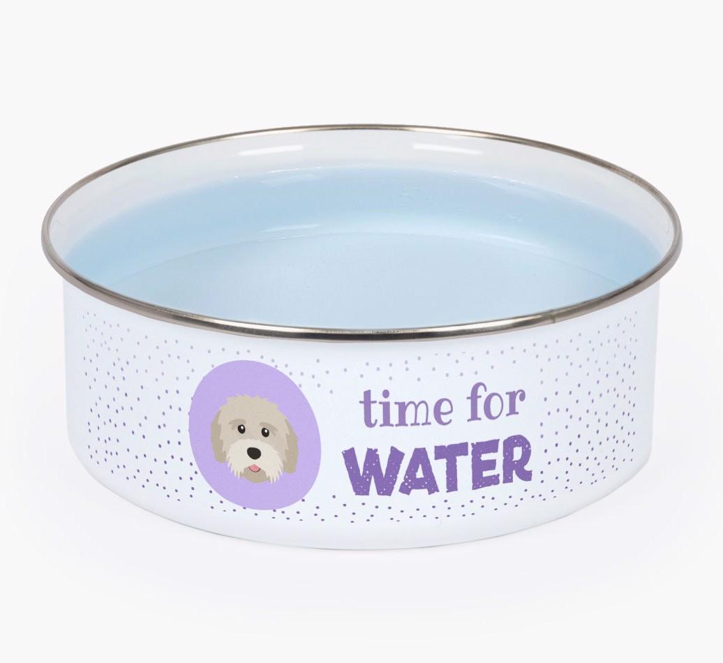 Time For Water: Personalized Enamel Tibetan Terrier Bowl