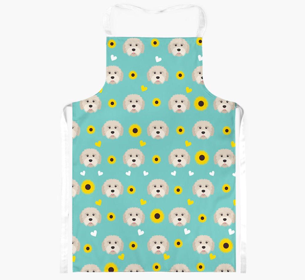 This apron has a delightful sunflower and heart pattern, and best of all - it's personalized with Tibetan Terrier's face too! This cute and colorful apron is sure to put a smile on every dog lover's face.