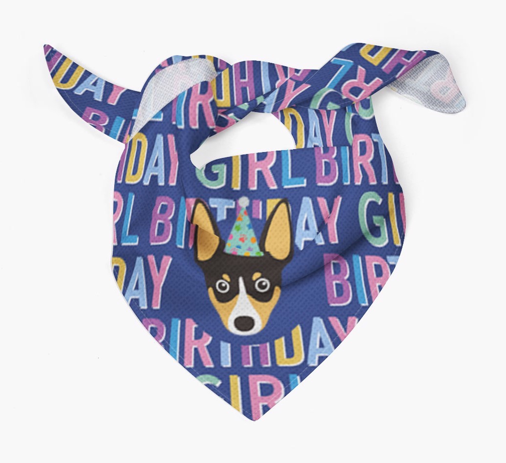 Featuring a text pattern that reads 'birthay girl' and personalized with Toy Fox Terrier's cute icon (complete with a fun party hat), your Toy Fox Terrier will look simply pawgeous on their special day when they're wearing this bandana.