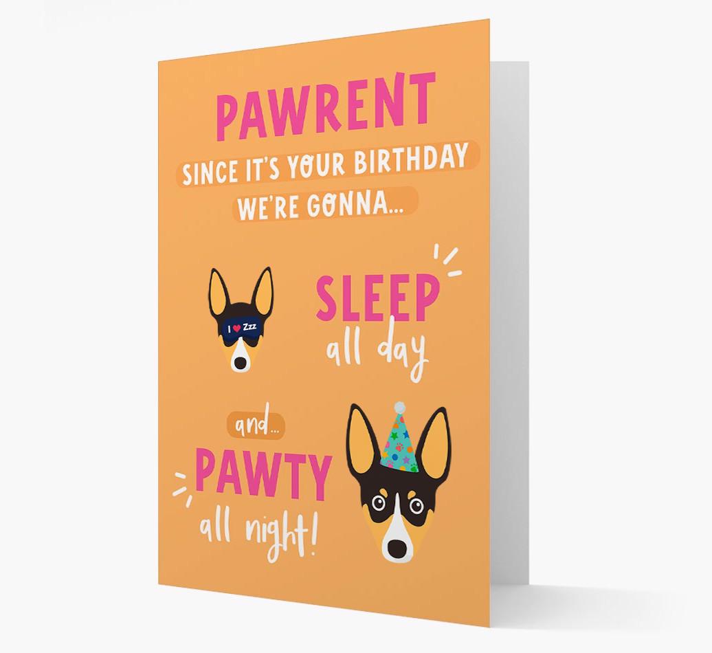 If Toy Fox Terrier woofs to pawty all day and sleep all night, this card encourages their pawrent to do it with them on their birthday!