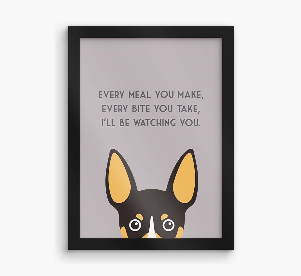 Printed with the words, ‘Every meal you make, every bite you take, I’ll be watching you’ and complete with our cute Toy Fox Terrier peeking from the bottom of the design, this artwork will look great on display in the kitchen or anywhere Toy Fox Terrier likes to watch you eat!