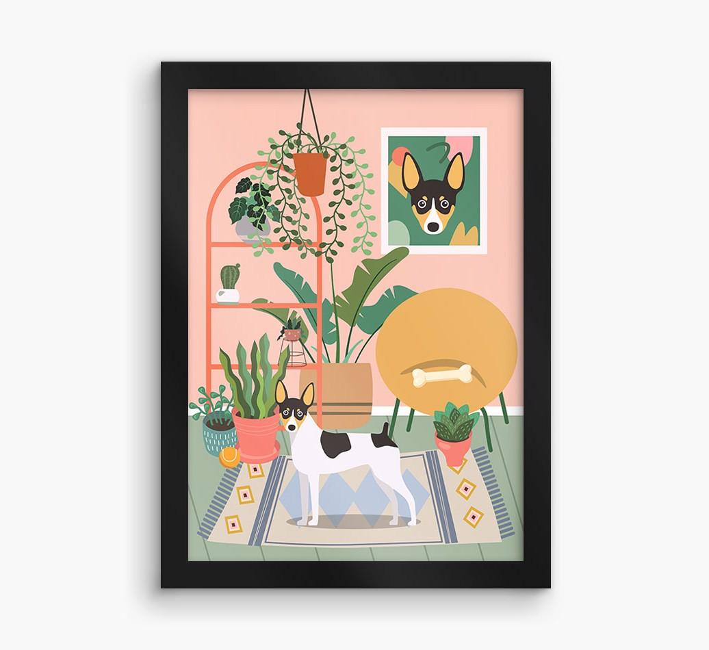 This contemporary piece of wall art pairs a chic living space with lovely pastel tones and a jungle of houseplants. Complete with the one that makes your house a home - Toy Fox Terrier! - this print is a wonderful way to display your love for your pooch.