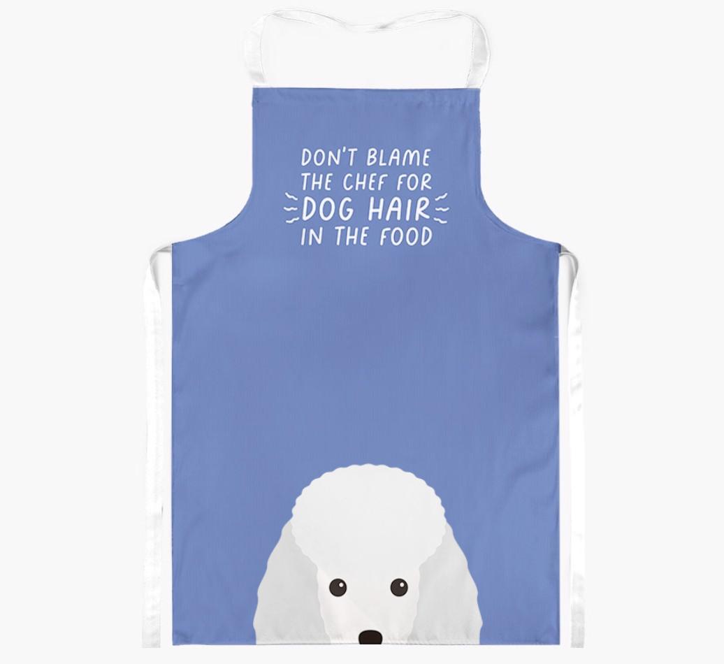 This funny apron will warn friends and family not to blame the chef for dog hairs in their food, they have Toy Poodle to thank for that!