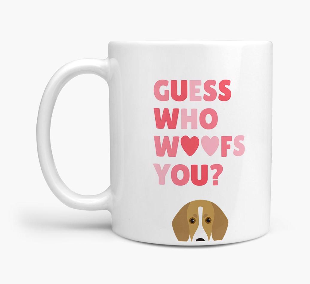 Personalized with Trailhound's cute face, this adorable mug is perfect for showing off the one who "woofs" you - how sweet!
