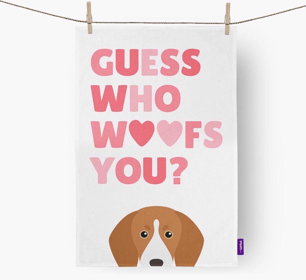'Guess Who Woofs You?' - Personalized Treeing Walker Coonhound Dish Towel