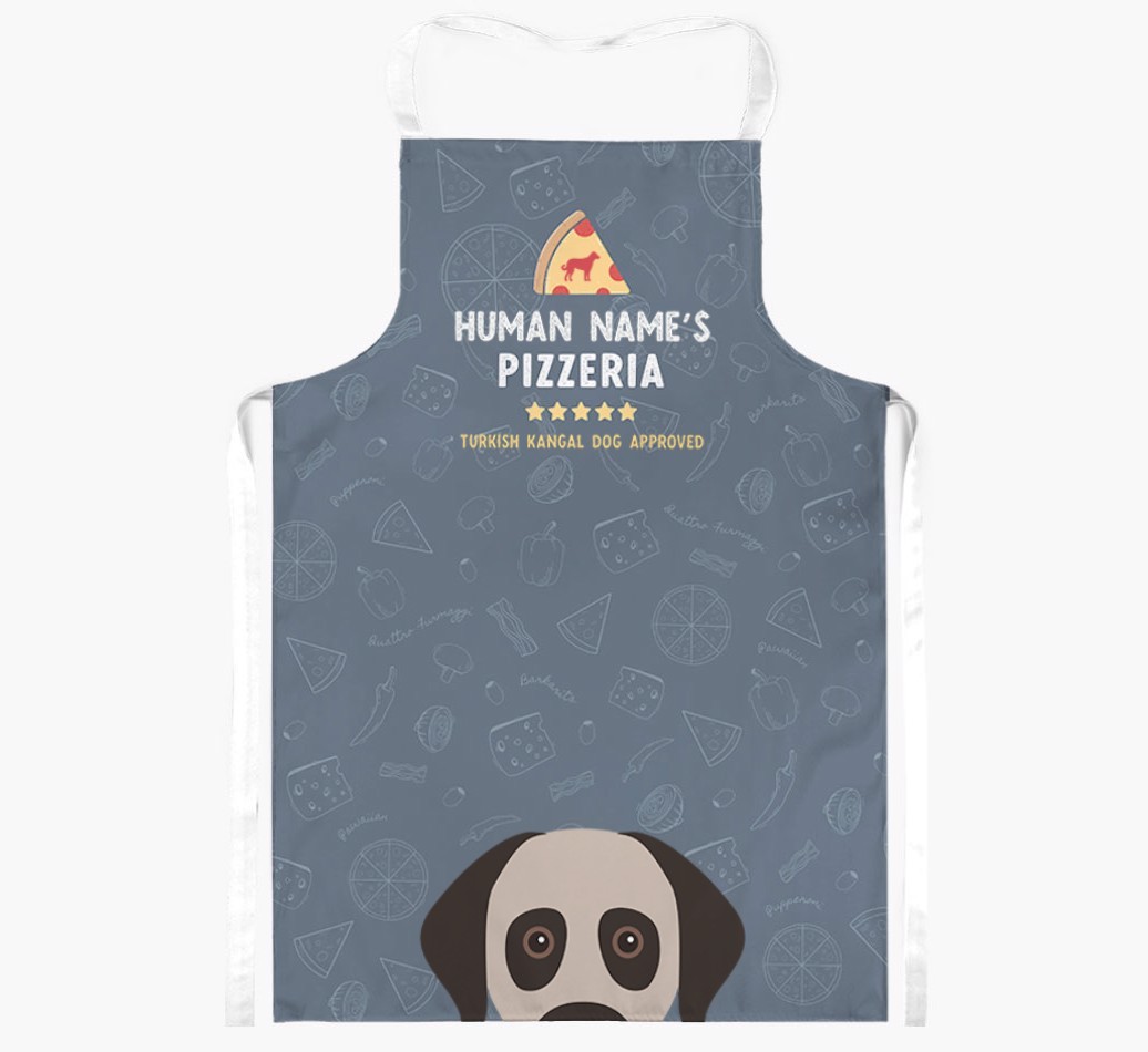 Featuring your furry friend's icon and lick of approval, plus your chosen human name, this apron is pawfect for anyone who considers themselves a pizza maestro in the kitchen. Available in a choice of 5 rustic colors, it'll make any Kangal lover happy.