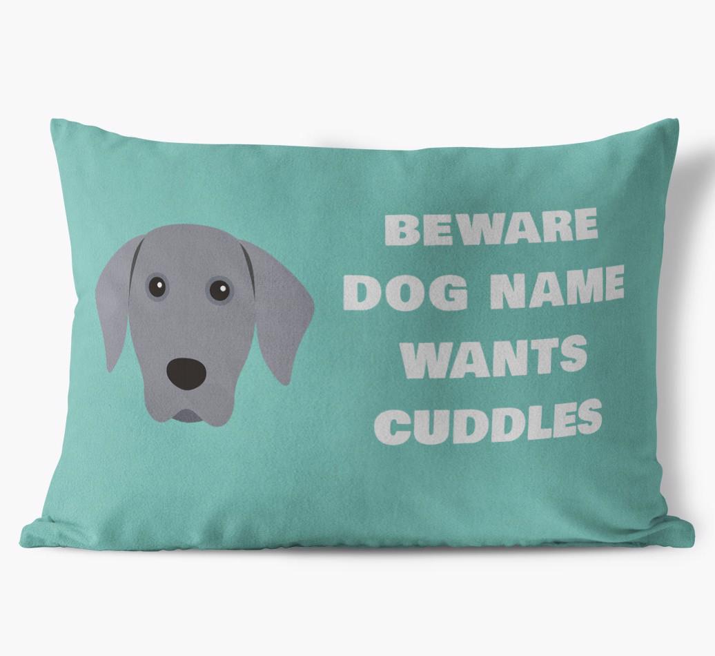 Beware of Cuddles: Personalized Weimaraner Soft Touch Pillow