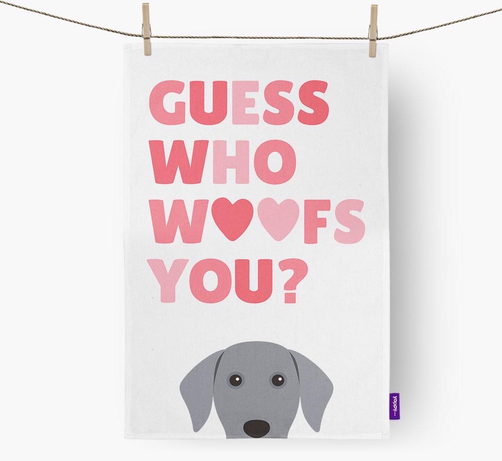'Guess Who Woofs You?' - Personalized Weimaraner Dish Towel