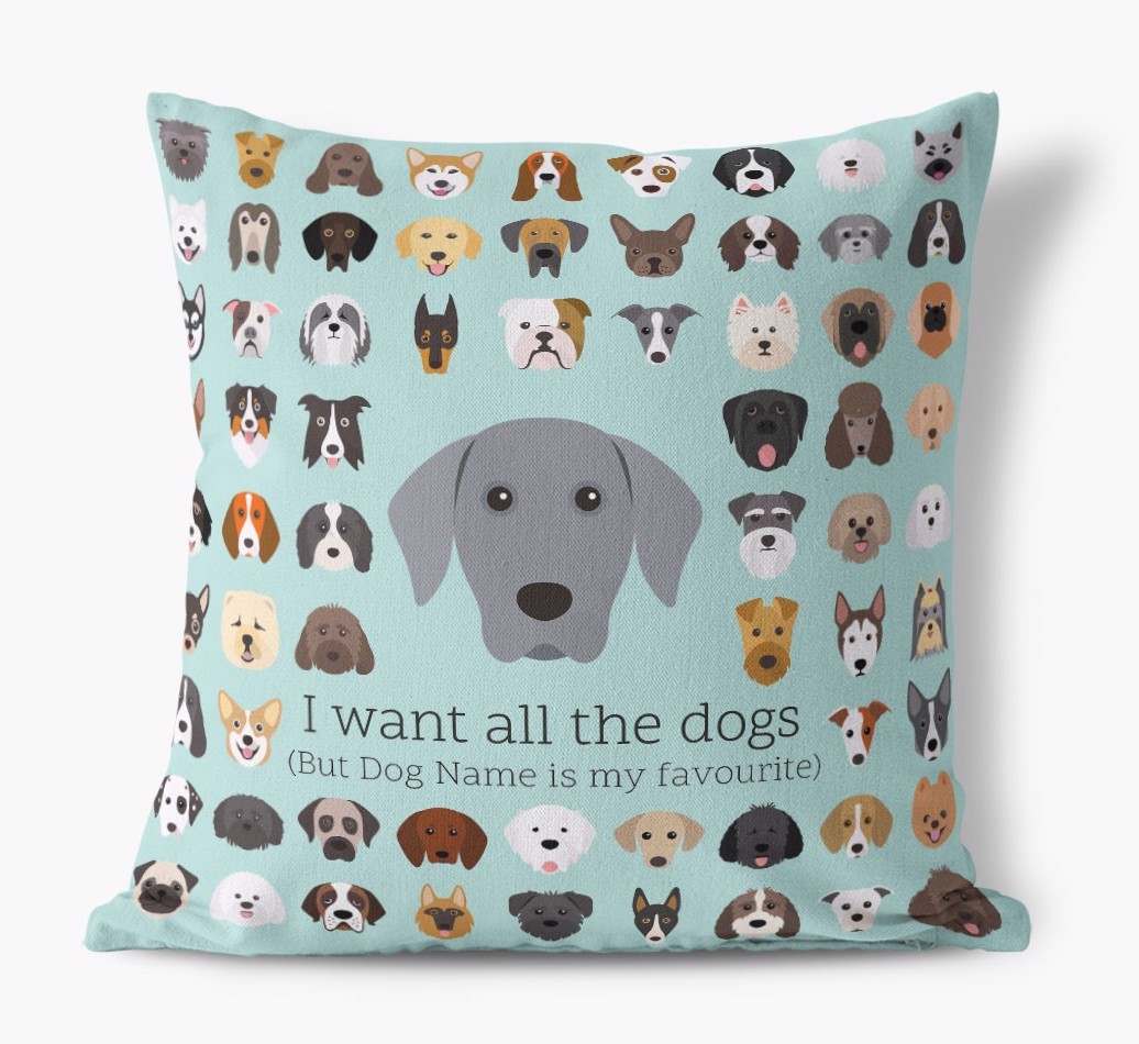 I Want All the Dogs: Personalized Weimaraner Canvas Pillow
