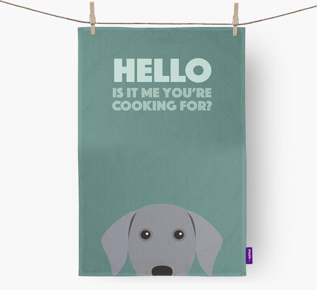 This gorgeous dish towel is sure to delight every Weimaraner pawrent, especially as it stars their pup asking their favorite question, 'is it me you're cooking for?'