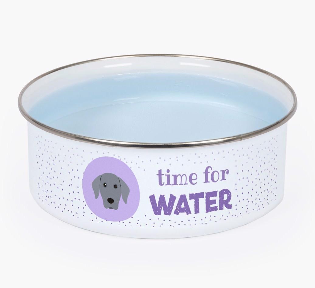 Time For Water: Personalized Enamel Weimaraner Bowl