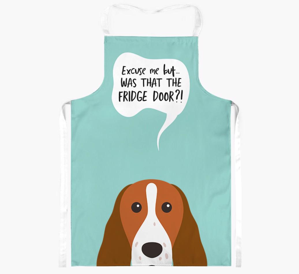 Featuring your hungry hound's cheeky icon and available in five eye-catching colors, this apron is a must-have for parents of greedy pups!